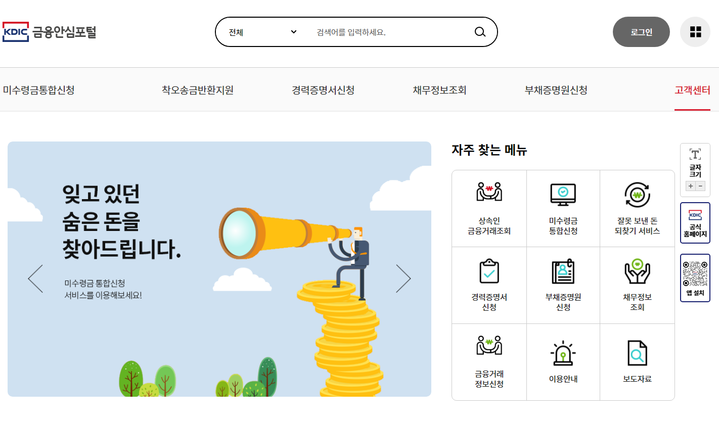 예금보험공사가 대신 돈을 찾아주는 서비스입니다.